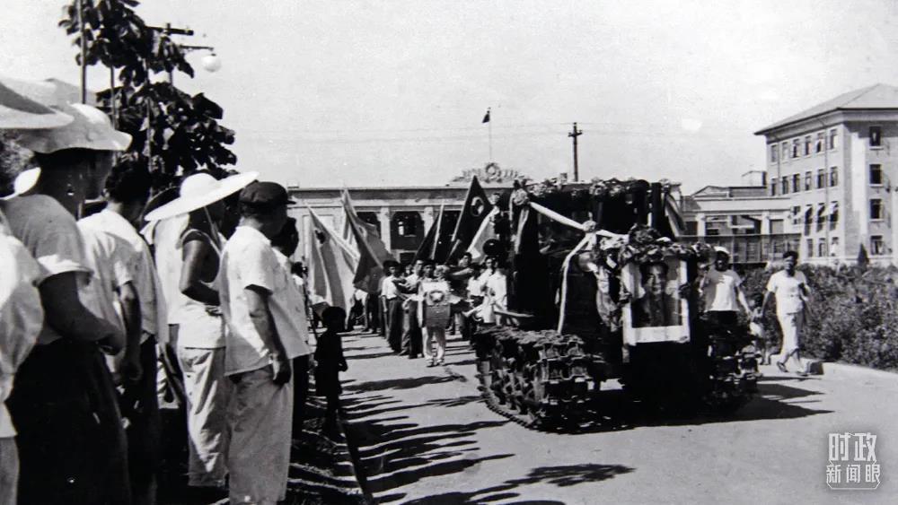 △1958年7月,第一臺國產(chǎn)“東方紅”牌拖拉機(jī)在洛陽拖拉機(jī)廠下線。(圖/視覺中國)