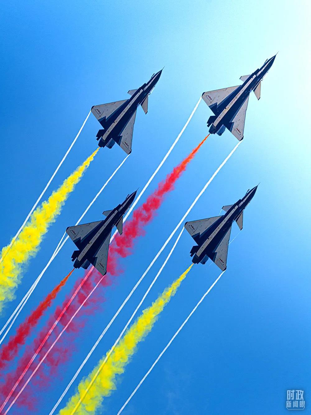 △11月11日是解放軍空軍成立日。這是今年珠海航展上“八一”表演隊(duì)的飛機(jī)表演。(圖/視覺中國)
