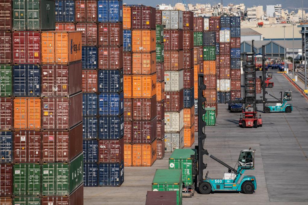 這是2019年9月6日拍攝的希臘比雷埃夫斯港集裝箱碼頭。(新華社發(fā),萊夫特里斯·帕察里斯攝)