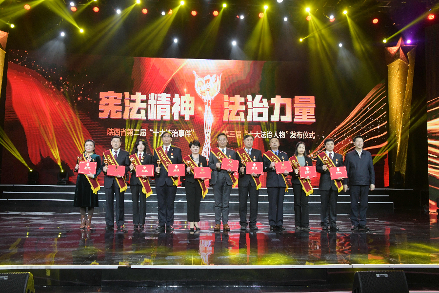 12月2日,陜西省第二屆“十大法治事件”暨第三屆“十大法治人物”發(fā)布儀式在西安舉行。省委常委、省委政法委書記莊長興,省人大常委會副主任、省總工會主席郭大為,副省長徐大彤,省政協(xié)副主席李曉東出席并為獲獎代表頒獎。