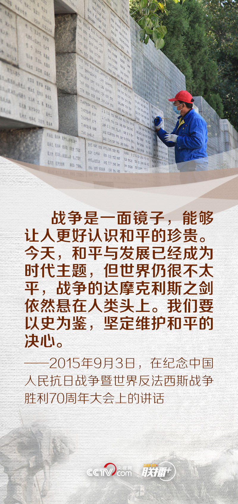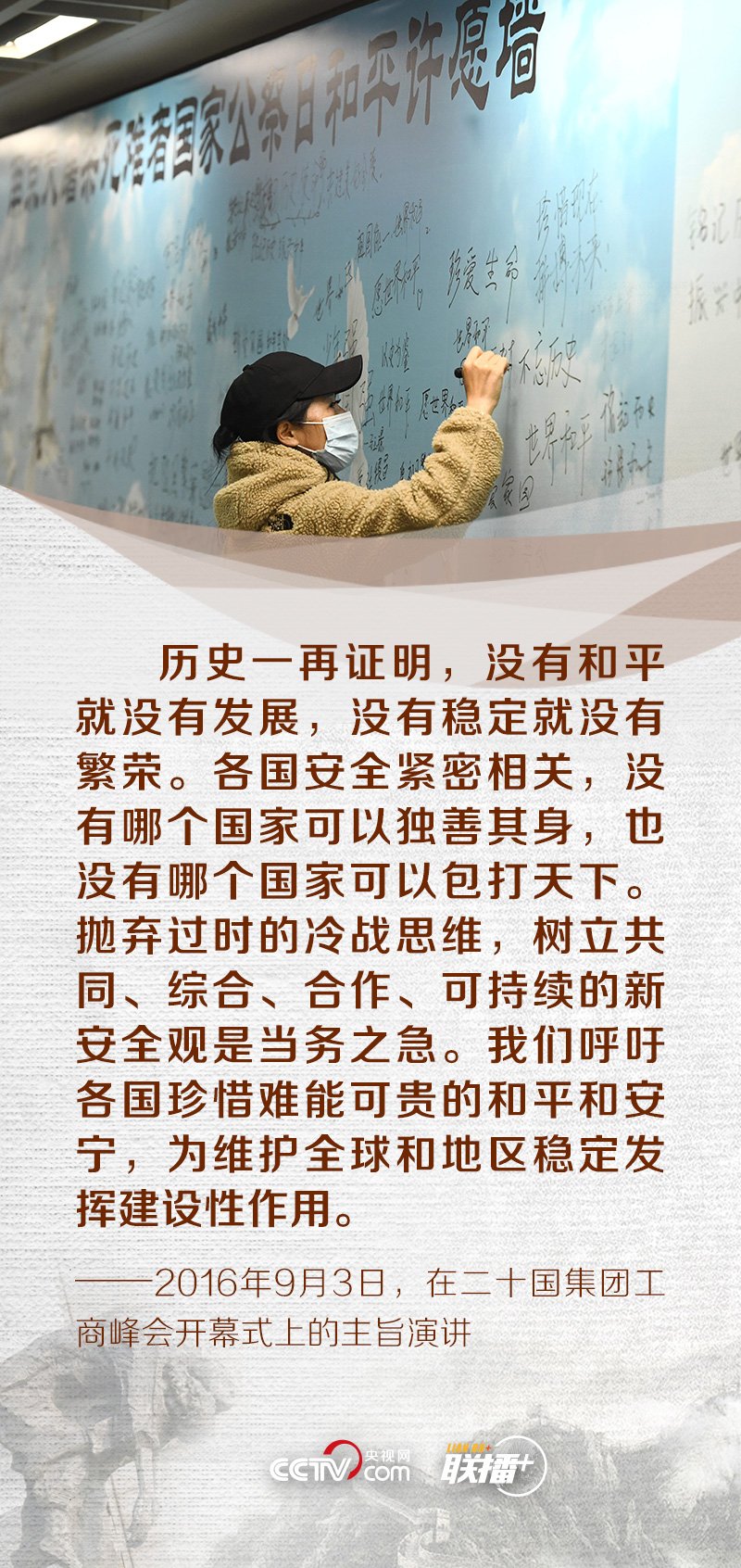 “歷史不會(huì)因時(shí)代變遷而改變,事實(shí)也不會(huì)因巧舌抵賴(lài)而消失。”“和平像陽(yáng)光一樣溫暖、像雨露一樣滋潤(rùn)。有了陽(yáng)光雨露,萬(wàn)物才能茁壯成長(zhǎng)。有了和平穩(wěn)定,人類(lèi)才能更好實(shí)現(xiàn)自己的夢(mèng)想。”2014年、2017年,習(xí)近平總書(shū)記曾兩次出席南京大屠殺死難者國(guó)家公祭儀式。
