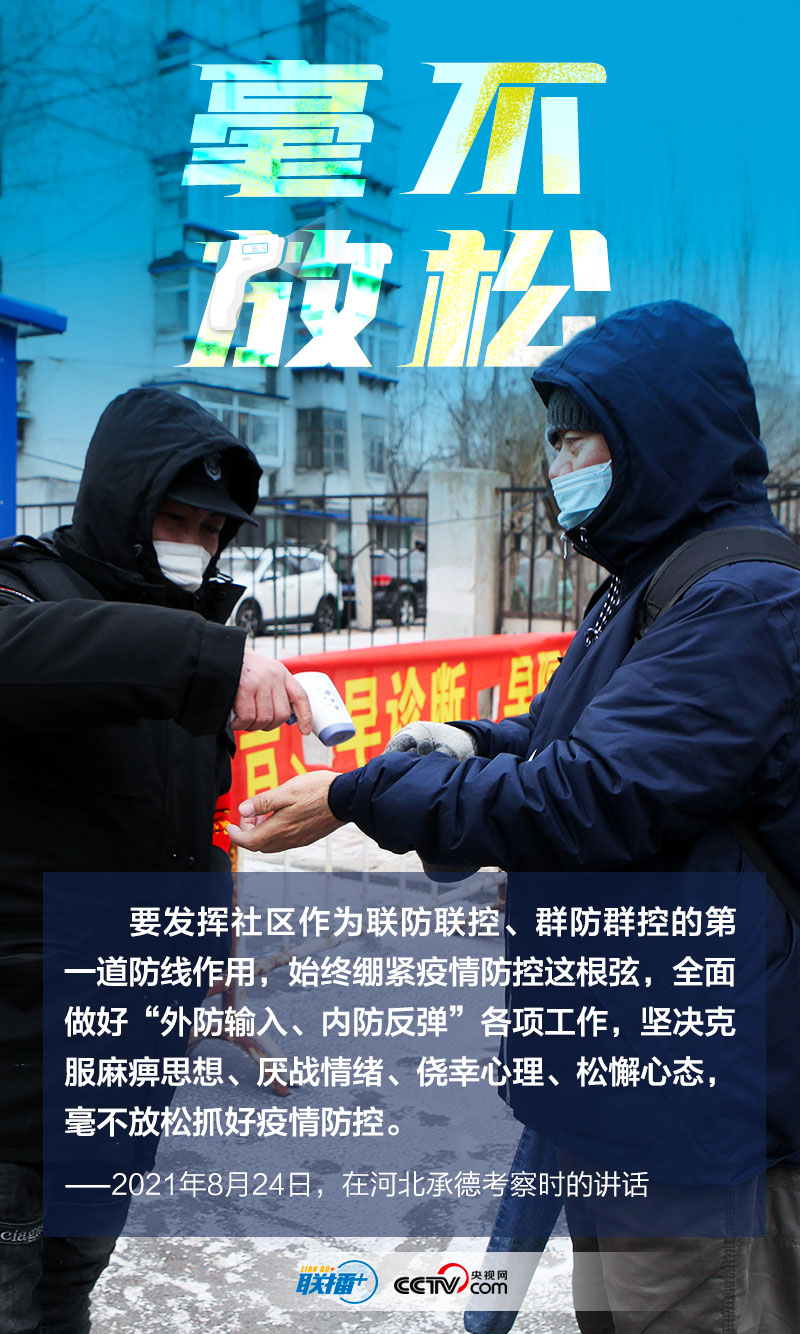 歲末年終,兩節(jié)將至,境外回國人員增多,國內(nèi)人員流動性增加,同時奧密克戎等新型變異毒株的出現(xiàn),使疫情傳播風(fēng)險加大,我國持續(xù)面臨較大的防控壓力。央視網(wǎng)《聯(lián)播+》特與您一起重溫總書記關(guān)于疫情防控的部署,讓我們共同堅定信心、慎終如始,筑牢抗擊新冠肺炎疫情安全防線。