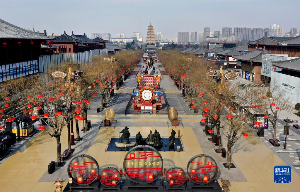 12月28日拍攝的西安市大唐不夜城(無人機(jī)照片)。新華社記者 陶明 攝