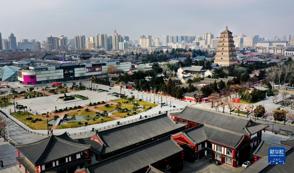 12月28日拍攝的西安市大雁塔周邊區(qū)域(無人機(jī)照片)。新華社記者 陶明 攝