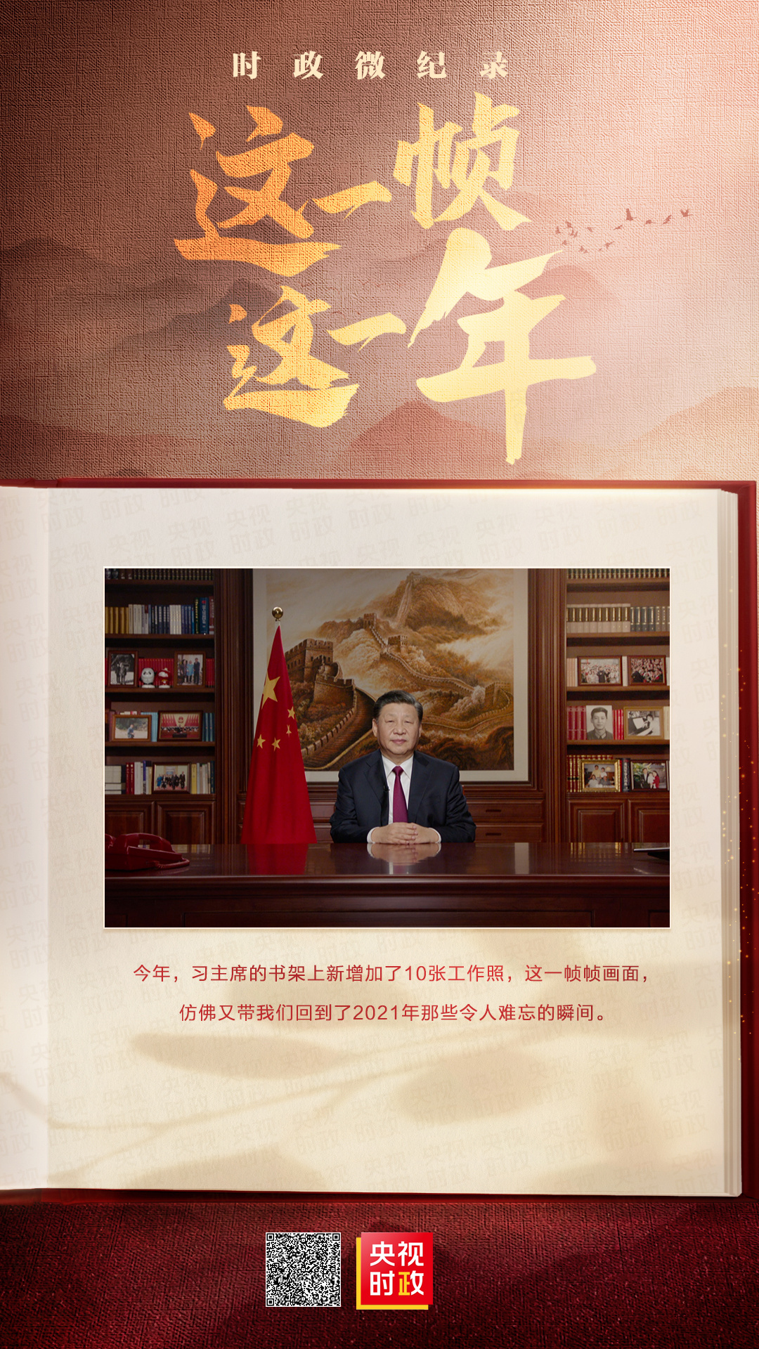 2021年12月31日,國家主席習(xí)近平發(fā)表二〇二二年新年賀詞。今年,習(xí)主席的書架上新增加了10張工作照,這一幀幀畫面又帶我們回到了2021年那些令人難忘的瞬間。