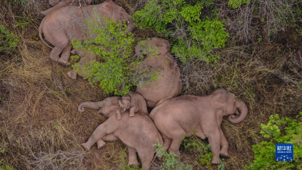 這是2021年6月7日在云南省昆明市晉寧區(qū)夕陽彝族鄉(xiāng)拍攝的野象(無人機照片)。新華社發(fā)
