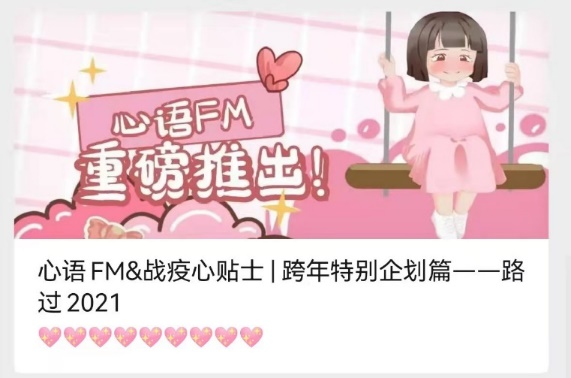 疫情防控期間,考慮到學(xué)生學(xué)習(xí)生活場(chǎng)所受限,學(xué)生情緒容易受到環(huán)境影響。心理健康教育中心通過(guò)新媒體開(kāi)展“戰(zhàn)疫心貼士”、心語(yǔ)FM專欄,每天為該校學(xué)生推送疫情心理調(diào)節(jié)小妙招及各類心理援助資源。相繼發(fā)布的15篇推文有效地幫助學(xué)生們掌握了有關(guān)疫情的心理健康知識(shí),學(xué)會(huì)了自我健心減壓,引導(dǎo)他們理性對(duì)待疫情,不恐慌、不信謠、不傳謠,保持良好心理狀態(tài)。