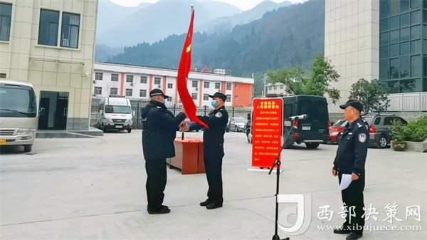 鎮(zhèn)巴縣公安局黨員突擊隊(duì)臨時(shí)黨支部書記黃小勇接旗