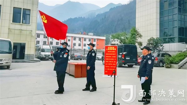 副縣長(zhǎng)、公安局黨委書記、局長(zhǎng)裴新民向鎮(zhèn)巴縣公安局黨員突擊隊(duì)授旗