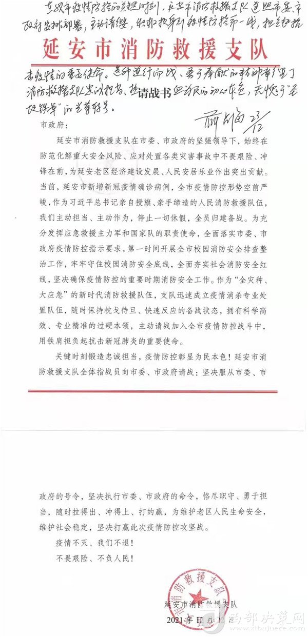 延安市消防救援支隊全體人員將以初心和使命凝聚起抗擊疫情防控的強大合力,堅決打贏疫情防控阻擊戰(zhàn)。