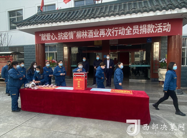 西部決策網(wǎng)訊(韓宗憲)1月10日上午,陜西柳林酒業(yè)集團舉辦“獻愛心 抗疫情”全員捐款活動。中共鳳翔區(qū)委副書記馬少輝、鳳翔區(qū)委常委、宣傳部部長賈亞斌,陜西柳林酒業(yè)集團總經(jīng)理柳林、常務(wù)副總周峰、總工程師胡建祥、行政副總呂廣田、財務(wù)總監(jiān)楊永忠出席活動。