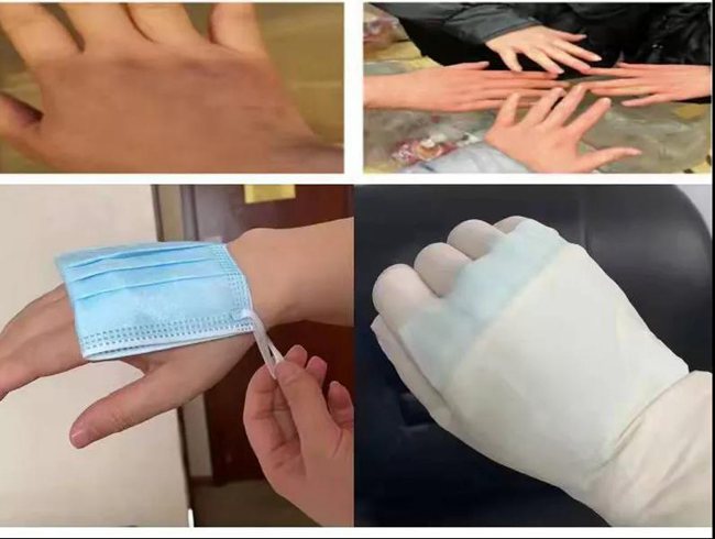 冬季的室外,還要反復(fù)進(jìn)行手部消毒,一天工作下來,核酸采樣隊(duì)隊(duì)員們的手都被凍得像石頭一樣,又紅又腫。為了解決這個(gè)問題,北關(guān)核酸采樣隊(duì)隊(duì)長解林清輾轉(zhuǎn)反側(cè),終于想到可以把外科手套折疊后墊到手背關(guān)節(jié)部位,取得保暖的效果。經(jīng)過實(shí)踐操作,這項(xiàng)技術(shù)已經(jīng)在各核酸采樣隊(duì)伍內(nèi)推廣使用。