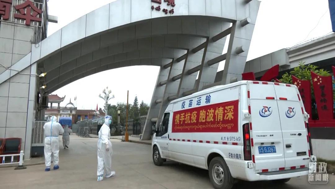 △2022年1月12日,中國向緬甸援助新冠疫苗交付儀式在孟連口岸舉行。運(yùn)輸車上的“胞波”二字,在緬語中意為“一母同胞的兄弟”。(圖/視覺中國)