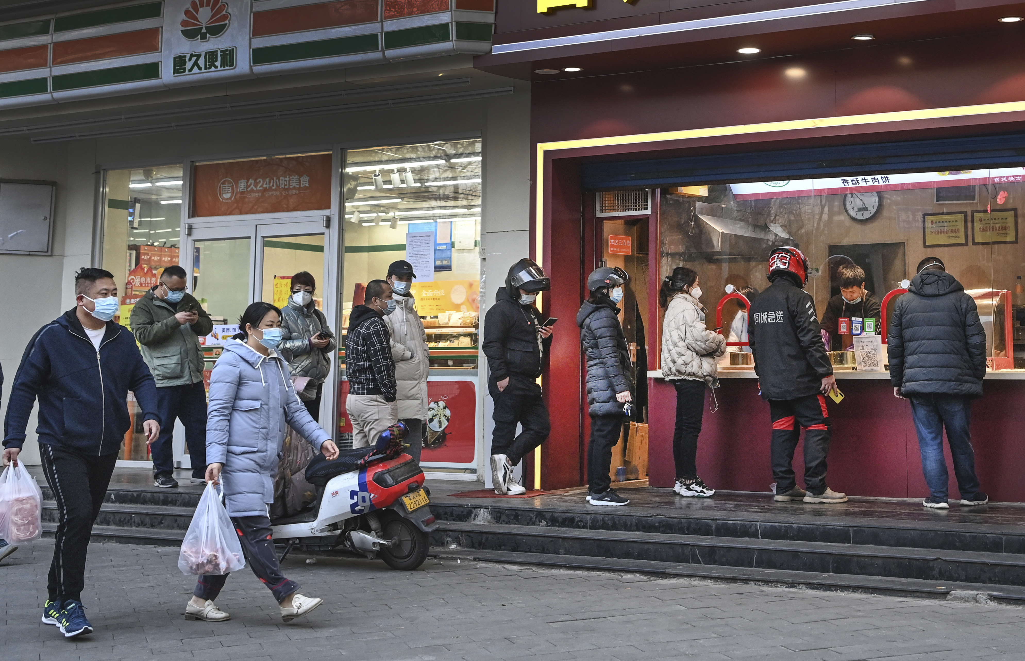 1月17日,人們在西安市碑林區(qū)一家食品店排隊購買食品。新華社記者 陶明 攝