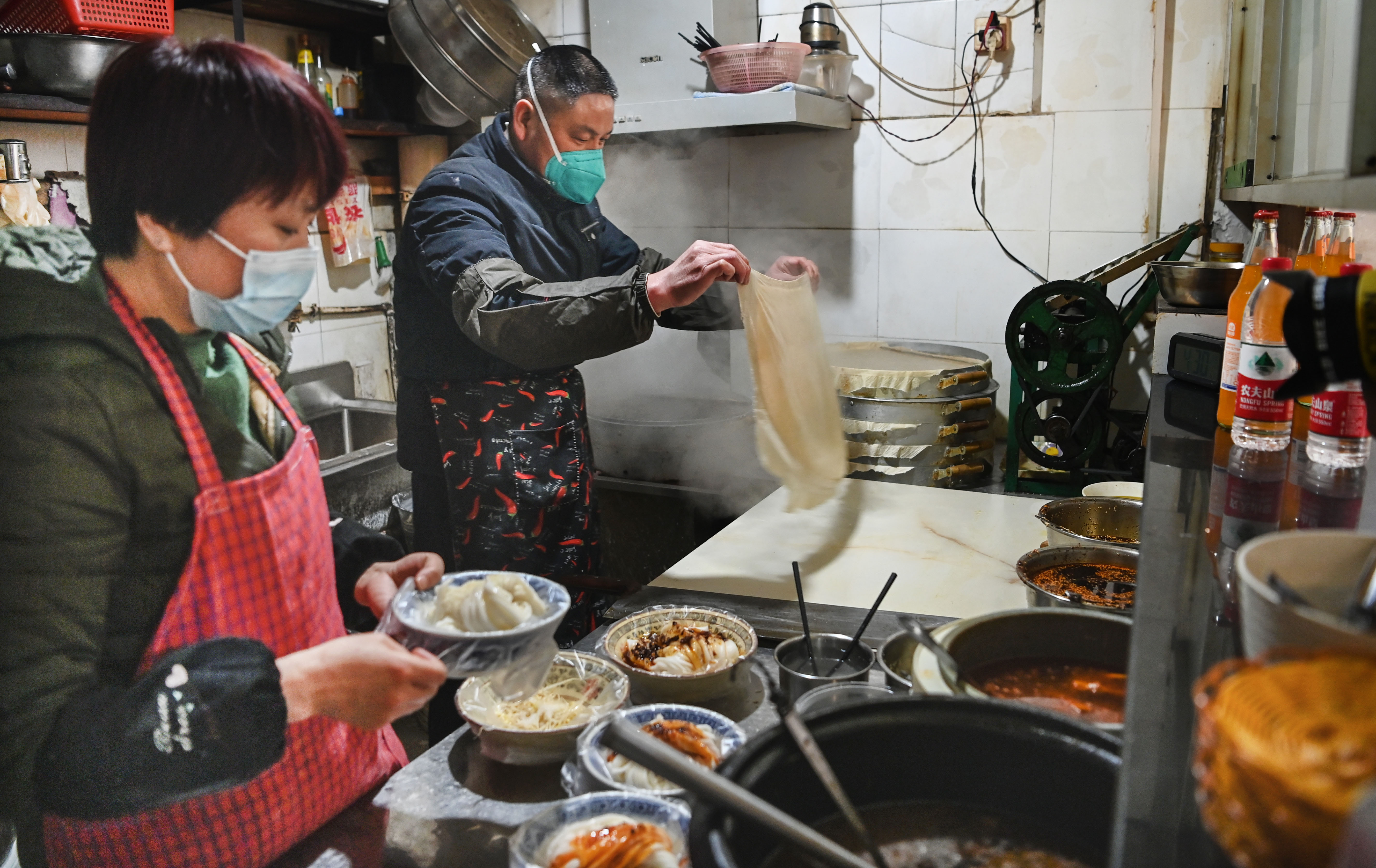 1月17日,西安市未央?yún)^(qū)一家小吃店開始營業(yè),為附近居民送餐上門。新華社記者 陶明 攝