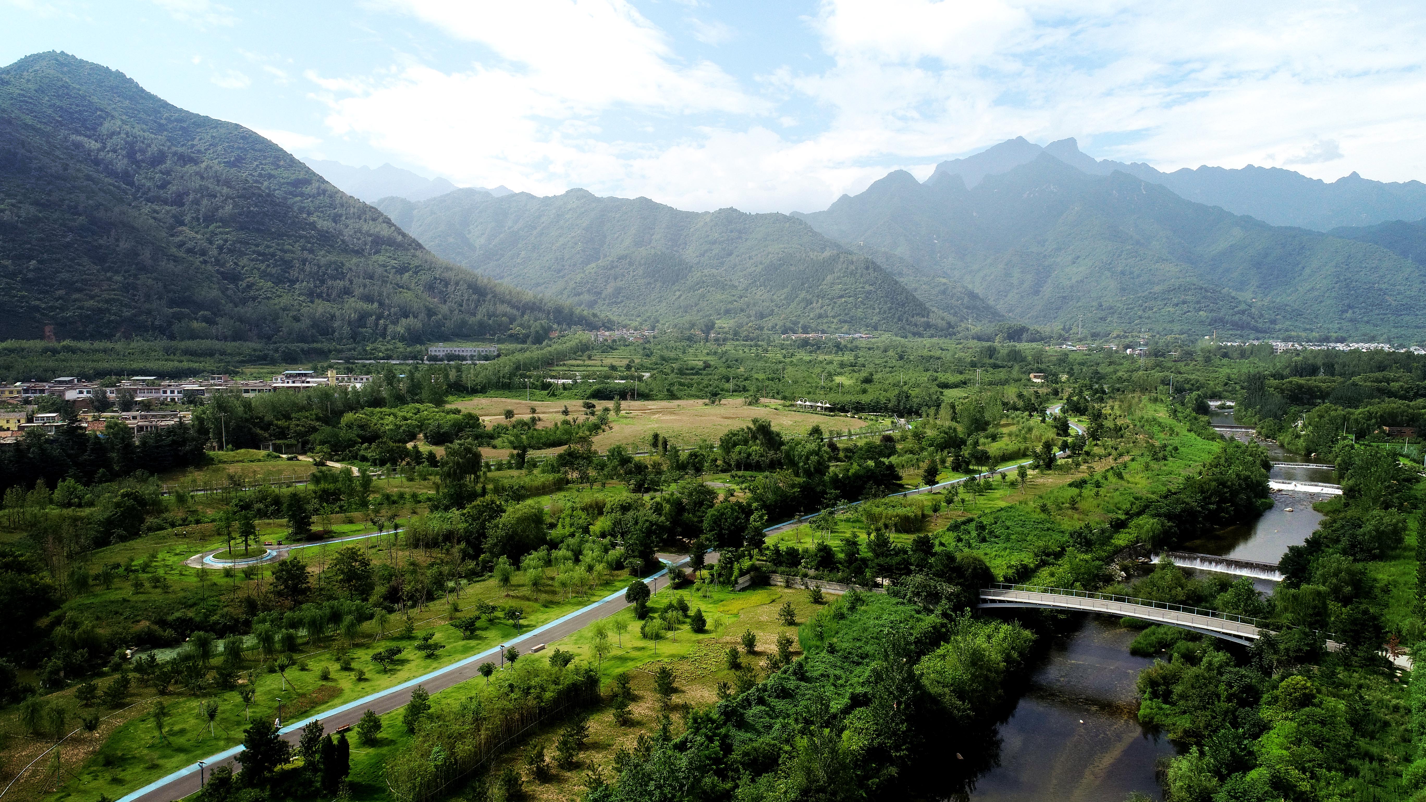 陜西省西安市長安區(qū)秦嶺違建別墅“群賢別業(yè)”拆除后建設(shè)的秦嶺和諧森林公園(2019年7月26日攝,無人機(jī)照片)。新華社記者 劉瀟 攝
