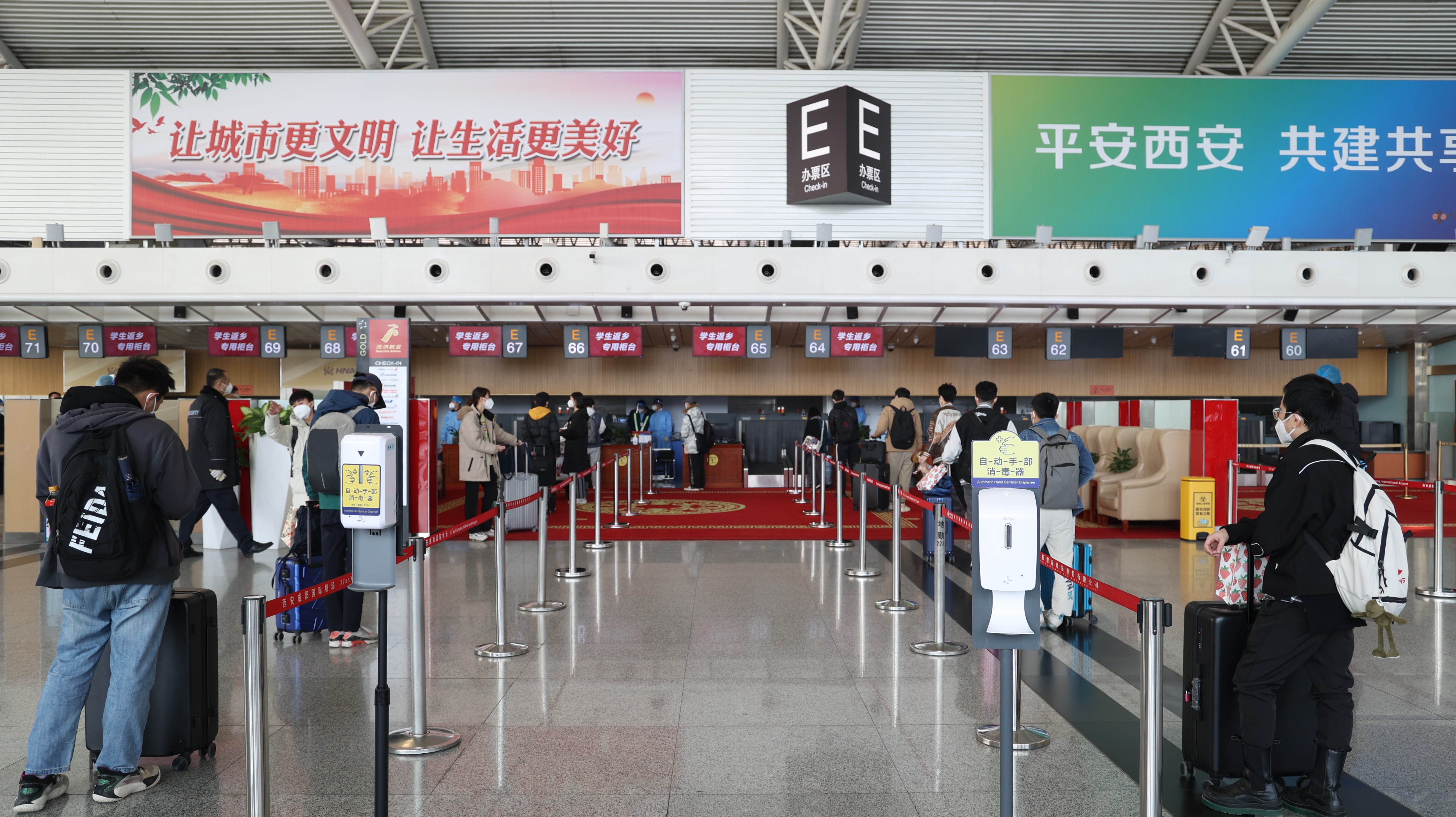 西安咸陽國際機(jī)場相關(guān)負(fù)責(zé)人表示,為確保學(xué)生順暢返鄉(xiāng),機(jī)場召集各一線保障單位研究制訂了學(xué)生包機(jī)保障方案,細(xì)化學(xué)生乘車抵達(dá)、進(jìn)入航站樓測溫查驗(yàn)、值機(jī)辦理、行李托運(yùn)、安全檢查、候機(jī)、登機(jī)等各環(huán)節(jié)的防疫和服務(wù)保障措施。