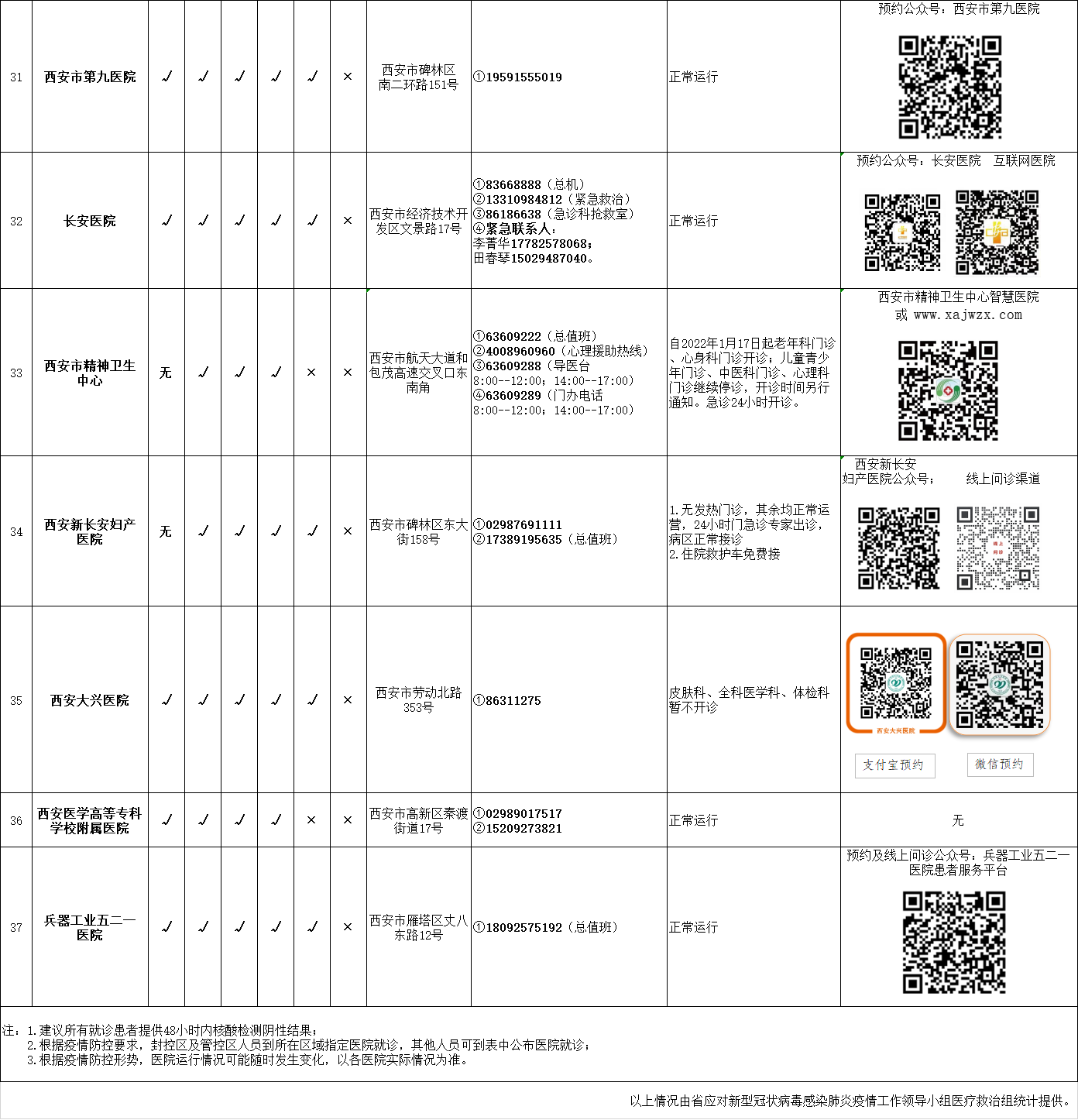 最新!西安市轄區(qū)內(nèi)三級醫(yī)院開診情況統(tǒng)計(jì)表(截至1月19日21時(shí))