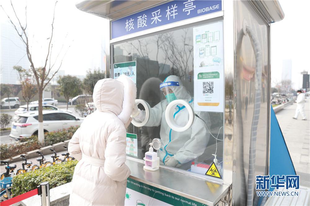 1月20日,西安市經(jīng)開區(qū)街頭,市民在核酸采樣亭進行核酸采樣。新華網(wǎng) 王智超攝