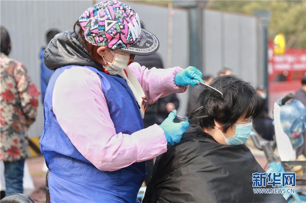 1月20日,西安市未央?yún)^(qū)街頭,市民在露天理發(fā)攤前理發(fā)。新華網(wǎng) 王智超攝