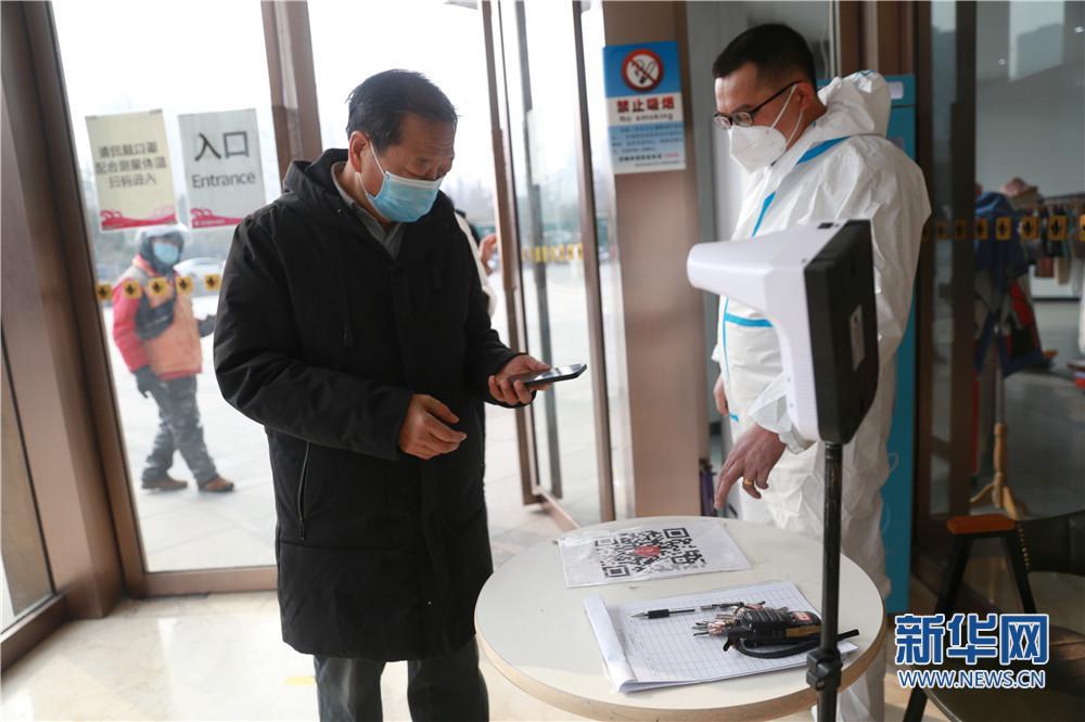 1月20日,西安市經(jīng)開區(qū)某商場內(nèi),市民在進入前進行掃碼登記。新華網(wǎng) 王智超攝