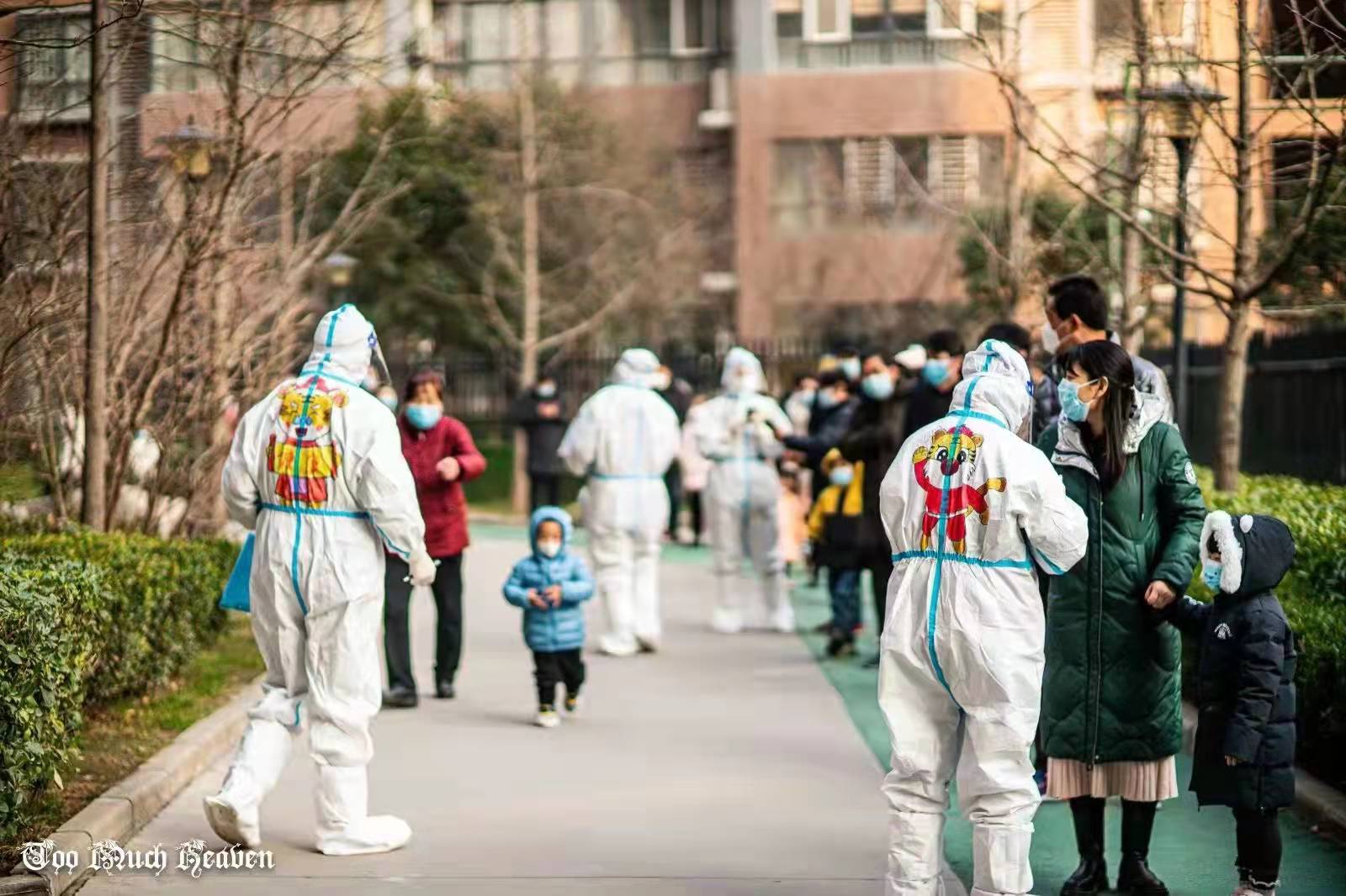 18日,在小區(qū)核酸篩查現(xiàn)場(chǎng),穿著虎年新春主題圖案防護(hù)服的“大白”引發(fā)了全場(chǎng)圍觀。小朋友希望和他們合影,小區(qū)里的攝影愛好者也拿著專業(yè)的器材來拍攝,還制作成短視頻發(fā)在業(yè)主群里分享快樂。大家紛紛表示“原來就快要到虎年了!”“年的味道一下子濃起來了!”有的小朋友采完樣都不愿意上樓,纏著爸爸媽媽問:“下次做核酸還能見到小老虎嗎?”