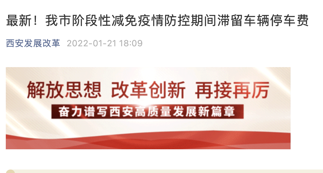 ——城市道路機動車停車泊位、政府投資的公共停車場、長途汽車站、醫(yī)院、旅游景區(qū)、高鐵西安北站、西安火車站、西安咸陽國際機場,免收封閉管理期間滯留車輛停車費用。