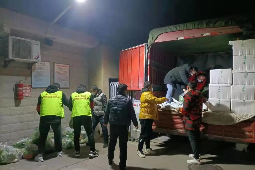 志愿者們在搬運生活物資。新城區(qū)委組織部供圖