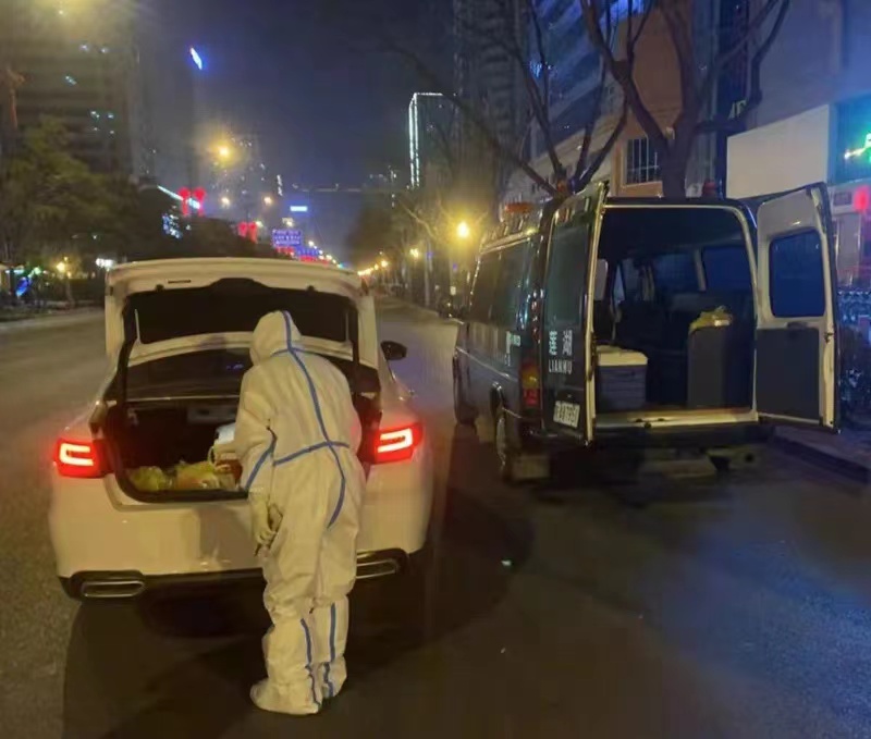疫情之初,街道核酸檢測樣本的打包和轉(zhuǎn)運工作任務(wù)艱巨,施煜被安排參與轉(zhuǎn)運工作。經(jīng)過一系列嚴(yán)格的崗前培訓(xùn)后他開始上崗。收集轉(zhuǎn)運核酸樣本的過程中需要二級防護,這期間需要吃飯喝水的話就得更換一套新的防護服,為了節(jié)省下一套防護服,施煜和他的同事們都選擇在工作中不吃不喝,兩頓飯之間經(jīng)常間隔十幾個小時。