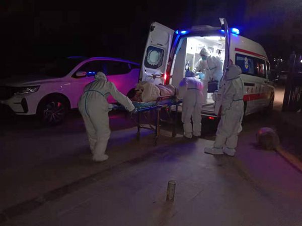 2022年1月14日,防疫人員將東方花園孕婦緊急送醫(yī)。浐灞融媒體中心供圖