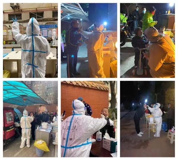 孫亞男在社區(qū)各個地點做核酸檢測。蓮湖區(qū)委組織部供圖