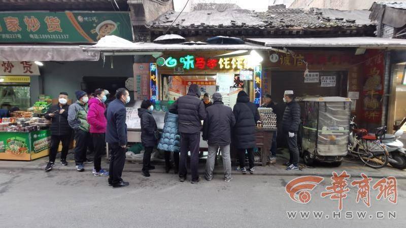 相對于回民街僅有兩三家店開門,而在周邊的大皮院、廟后街上就是另一番景象。多家餐飲店、美食攤不僅復(fù)工營業(yè)甚至門前還排起了長隊(duì)。“在家里憋了太久,就饞這一口牛肉泡饃。今天允許大家出門購物了么,就趕飯點(diǎn)前來這大飽口福。”在一家泡饃店門前正排隊(duì)的顧客。雖然暫時還不允許堂食,但仍不能阻擋人們對美食的向往,紛紛拎著打包好的美食帶走。