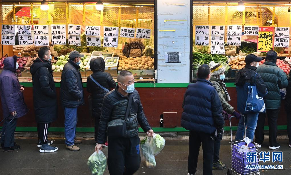1月23日,在西安市碑林區(qū),市民排隊(duì)購(gòu)物。