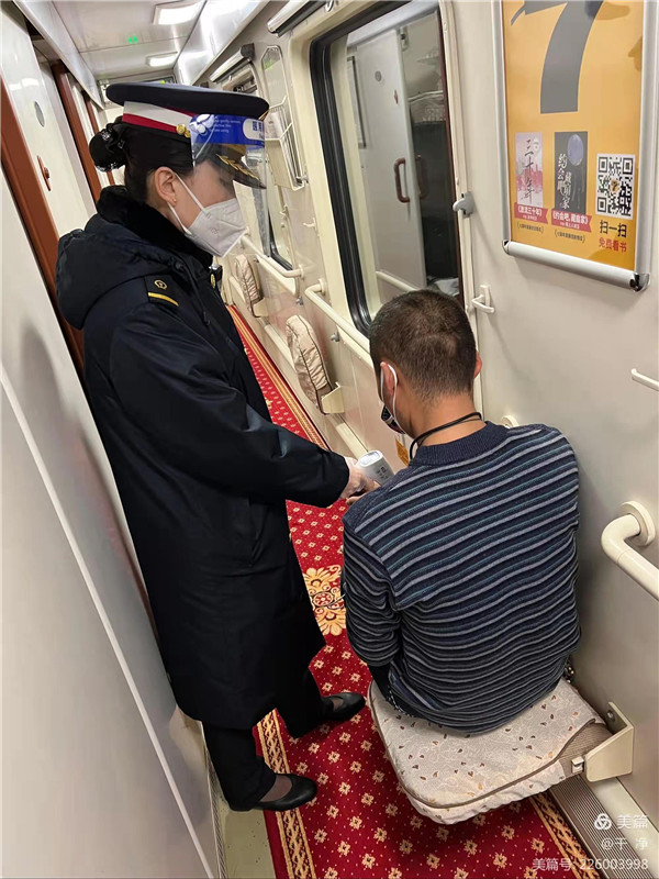 西部決策網(wǎng)訊 正值春運(yùn)期間,在當(dāng)前疫情防控的嚴(yán)峻形勢(shì)下,西安客運(yùn)段上海一隊(duì)上海十組疫情期間一直堅(jiān)守在一線工作崗位上,帶領(lǐng)班組積極響應(yīng)各項(xiàng)工作部署,嚴(yán)格執(zhí)行集團(tuán)公司和西安客運(yùn)段疫情防控工作要求,做好列車上的日常消毒、測(cè)量體溫等工作,確保疫情防控萬(wàn)無(wú)一失。