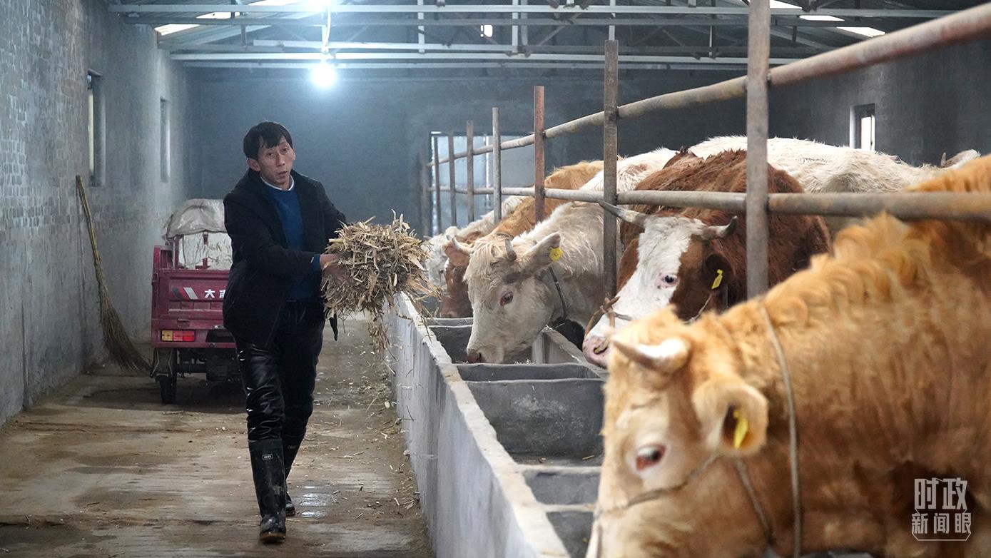 △段村經(jīng)濟(jì)合作社養(yǎng)?;?,工作人員正在添飼料。(總臺(tái)央廣記者潘毅拍攝)