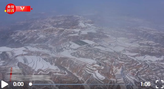 △雪后的黃土高原,梯田紋理清晰可見,如畫一般。(總臺(tái)記者康曉宇、朱銳峰拍攝)
