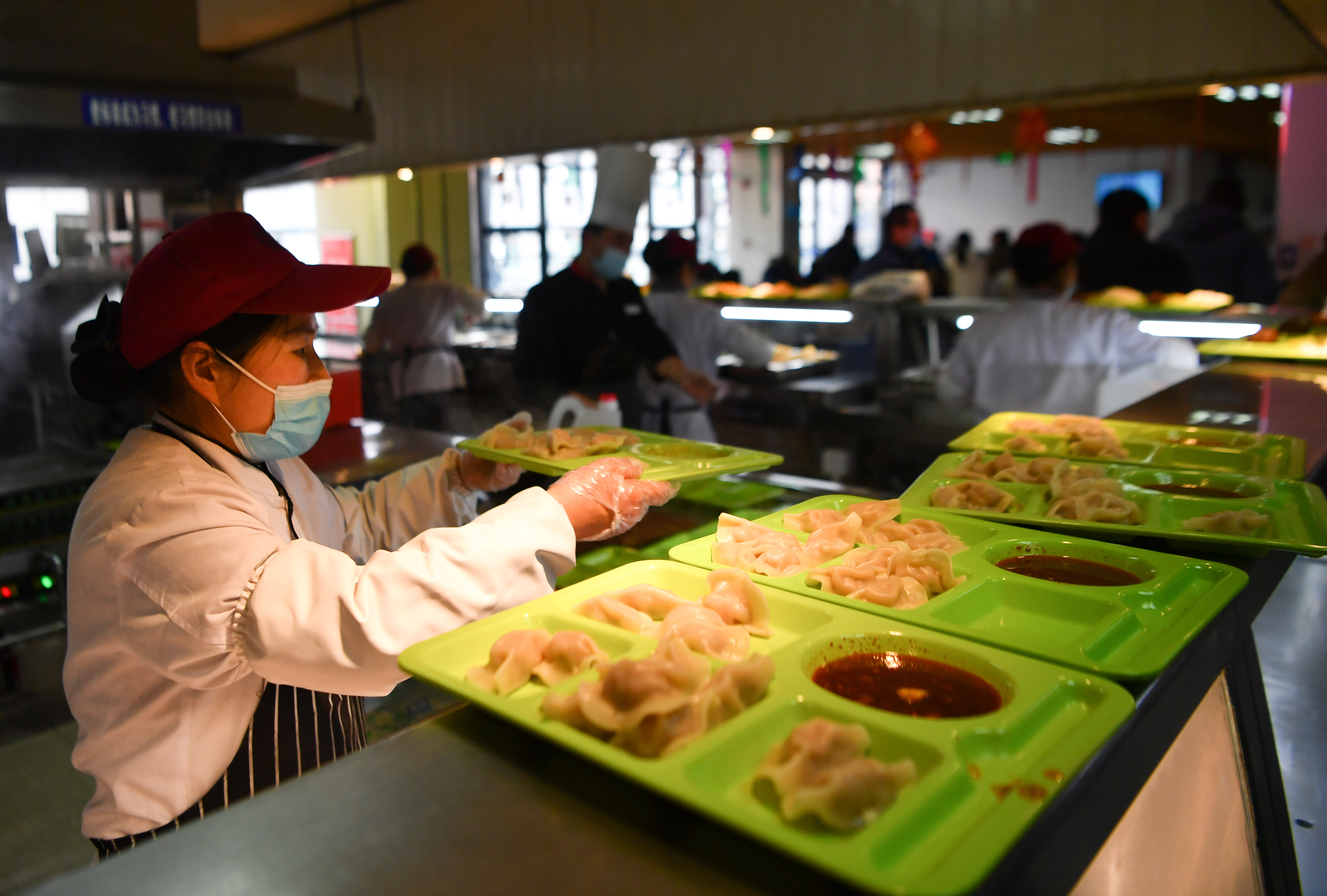 1月29日,工作人員在西安交通大學(xué)興慶校區(qū)校園食堂準(zhǔn)備午餐。新華社記者 張博文 攝