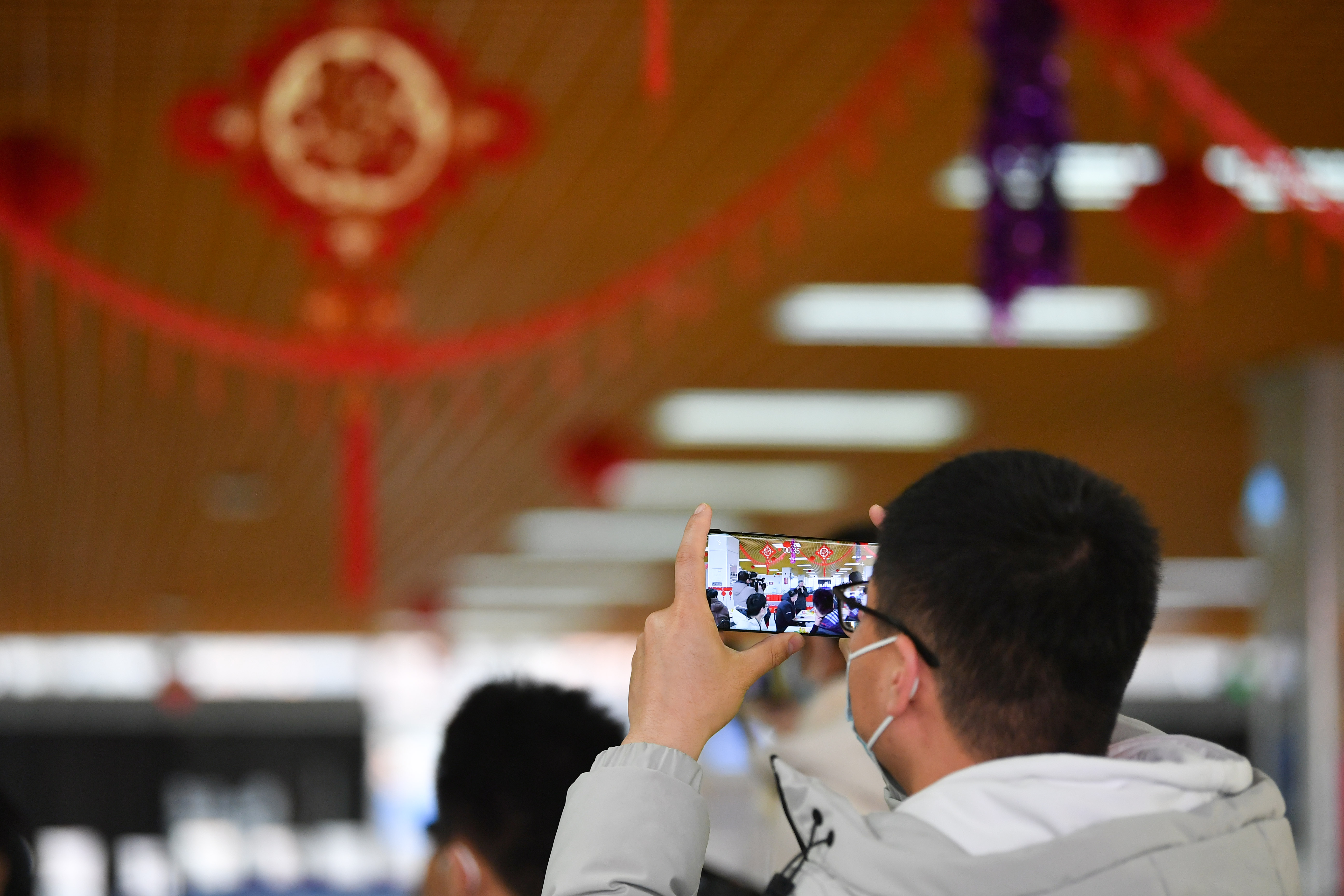 1月29日,西安交通大學(xué)興慶校區(qū),一名留校學(xué)生拍攝禮包發(fā)放現(xiàn)場。新華社記者 張博文 攝