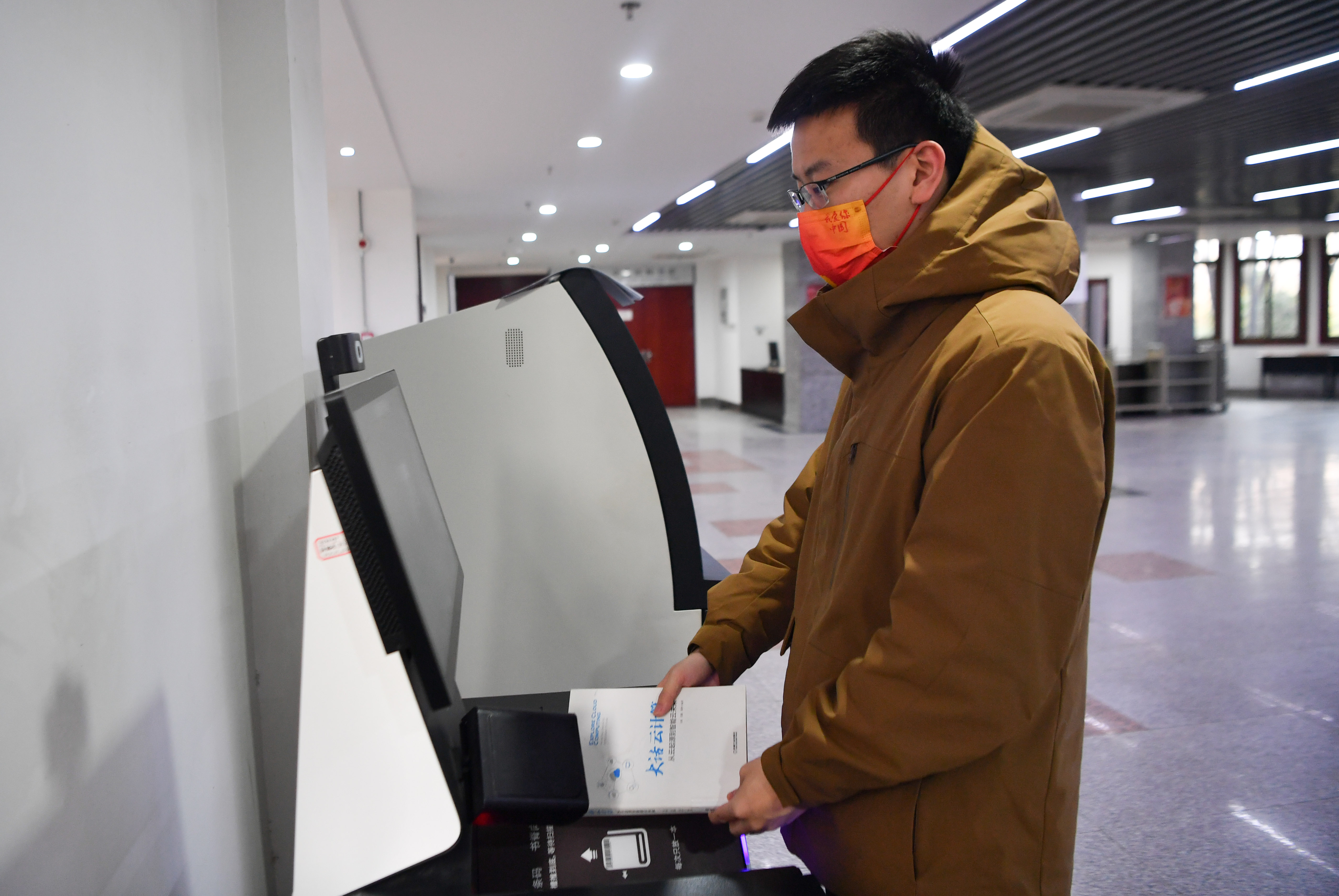 1月29日,一名留校學(xué)生在西安交通大學(xué)興慶校區(qū)圖書館借閱書籍。新華社記者 張博文 攝