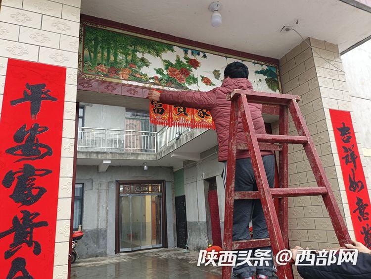 鄠邑區(qū)玉蟬街道龍家寨村村民貼春聯(lián)。