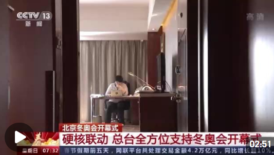 北京2022年冬奧會開幕式播控領域負責人 總臺技術局高級工程師 劉新:總臺技術局抽調了26名精英來參加這次開閉幕式技術保障活動,我們主要分三大部分,第一部分是播控領域,大家看到的地面的大屏,包括立面的顯示,還有南北大屏的顯示,都是由我們來操作的。