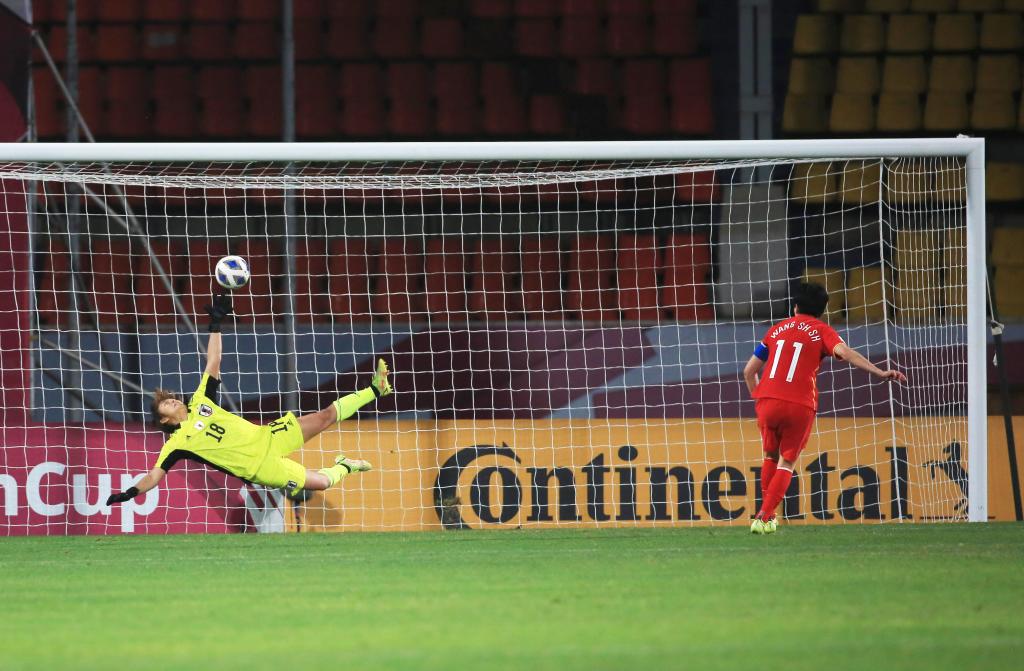 2月3日,中國隊球員王珊珊(右)在點球大戰(zhàn)中破門。新華社發(fā)(賈韋德·達爾攝)