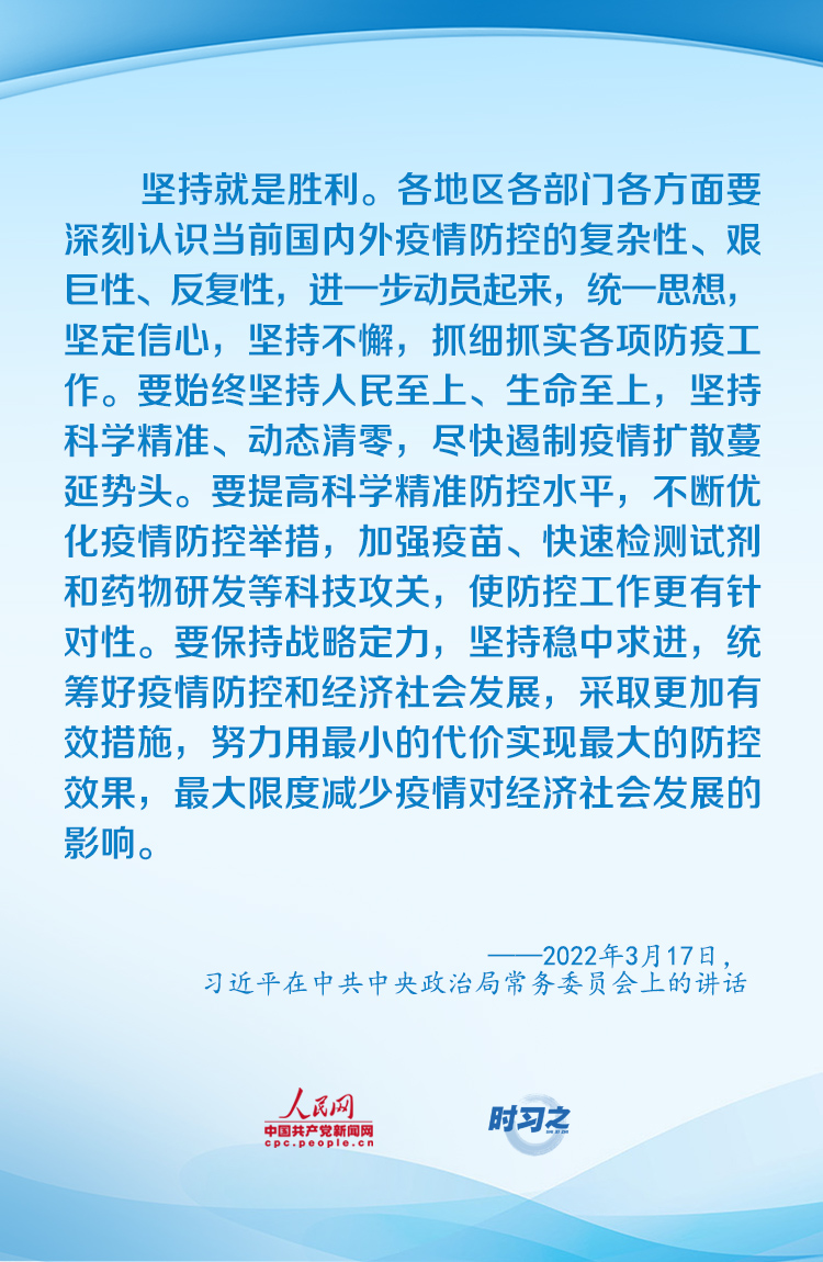 “要始終堅持人民至上、生命至上,堅持科學(xué)精準(zhǔn)、動態(tài)清零,盡快遏制疫情擴(kuò)散蔓延勢頭”。面對新冠肺炎疫情的跌宕反復(fù),習(xí)近平總書記親自指揮、親自部署,以科學(xué)之策應(yīng)對非常之難。今年以來,如何打好疫情防控和經(jīng)濟(jì)社會發(fā)展之戰(zhàn),習(xí)近平作出重要部署。