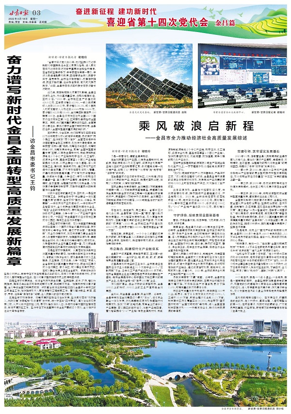 “省第十三次黨代會以來,我們堅持以習(xí)近平新時代中國特色社會主義思想為指導(dǎo),深入貫徹落實習(xí)近平總書記對甘肅重要講話和指示精神,在省委的堅強領(lǐng)導(dǎo)下,牢牢把握發(fā)展第一要務(wù),牢記為民造福是最大政績,團結(jié)帶領(lǐng)全市人民苦干實干、奮勇爭先,全市經(jīng)濟穩(wěn)定增長,改革穩(wěn)步推進,民生不斷改善,社會和諧穩(wěn)定,黨風(fēng)政風(fēng)持續(xù)向好。”近日,金昌市委書記王鈞接受甘肅日報記者采訪時說。
