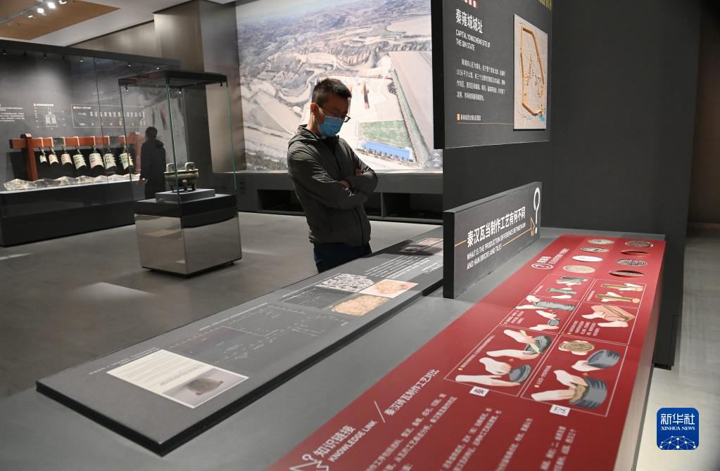 4月28日,游客在陜西考古博物館內參觀。新華社記者 李一博 攝