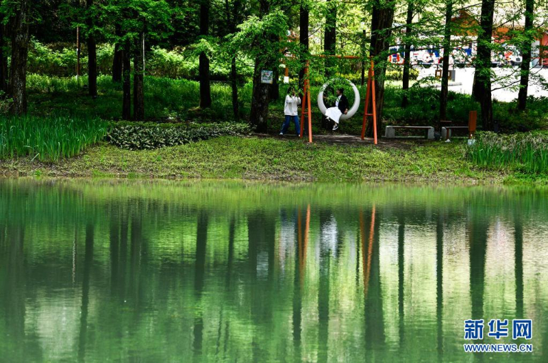 5月3日,游客在河北省石家莊市龍泉湖濕地公園內(nèi)游覽。新華社記者 牟宇 攝