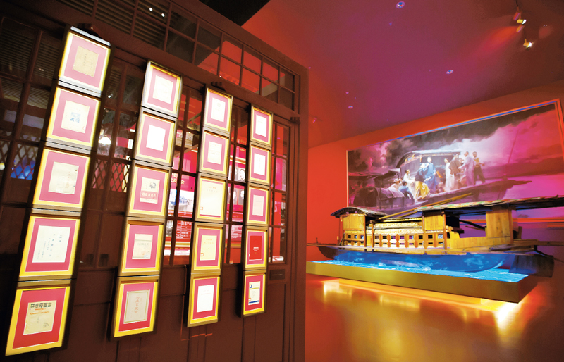 圖為中國共產(chǎn)黨歷史展覽館中嘉興南湖紅船場景展出。 劉新武/攝
