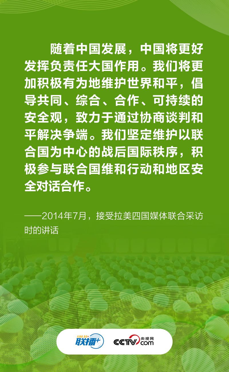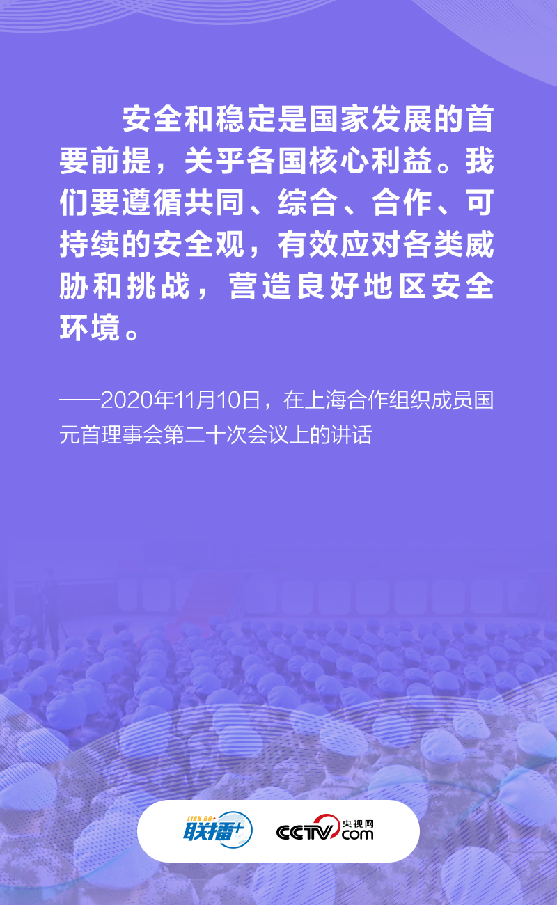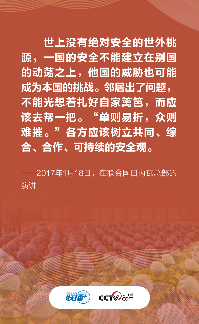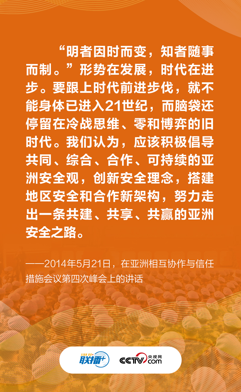 作為負(fù)責(zé)任的大國,中國一直為維護(hù)世界和平、安寧與發(fā)展不懈努力。2014年5月21日,為促進(jìn)亞洲和平發(fā)展,習(xí)近平主席在亞洲相互協(xié)作與信任措施會(huì)議第四次峰會(huì)上提出踐行共同、綜合、合作、可持續(xù)的亞洲安全觀。此后,他在諸多國際場合多次倡導(dǎo)并不斷發(fā)展“共同、綜合、合作、可持續(xù)的安全觀”,為世界指引一條通往持久和平的康莊大道。央視網(wǎng)《聯(lián)播+》與您一起學(xué)習(xí)。