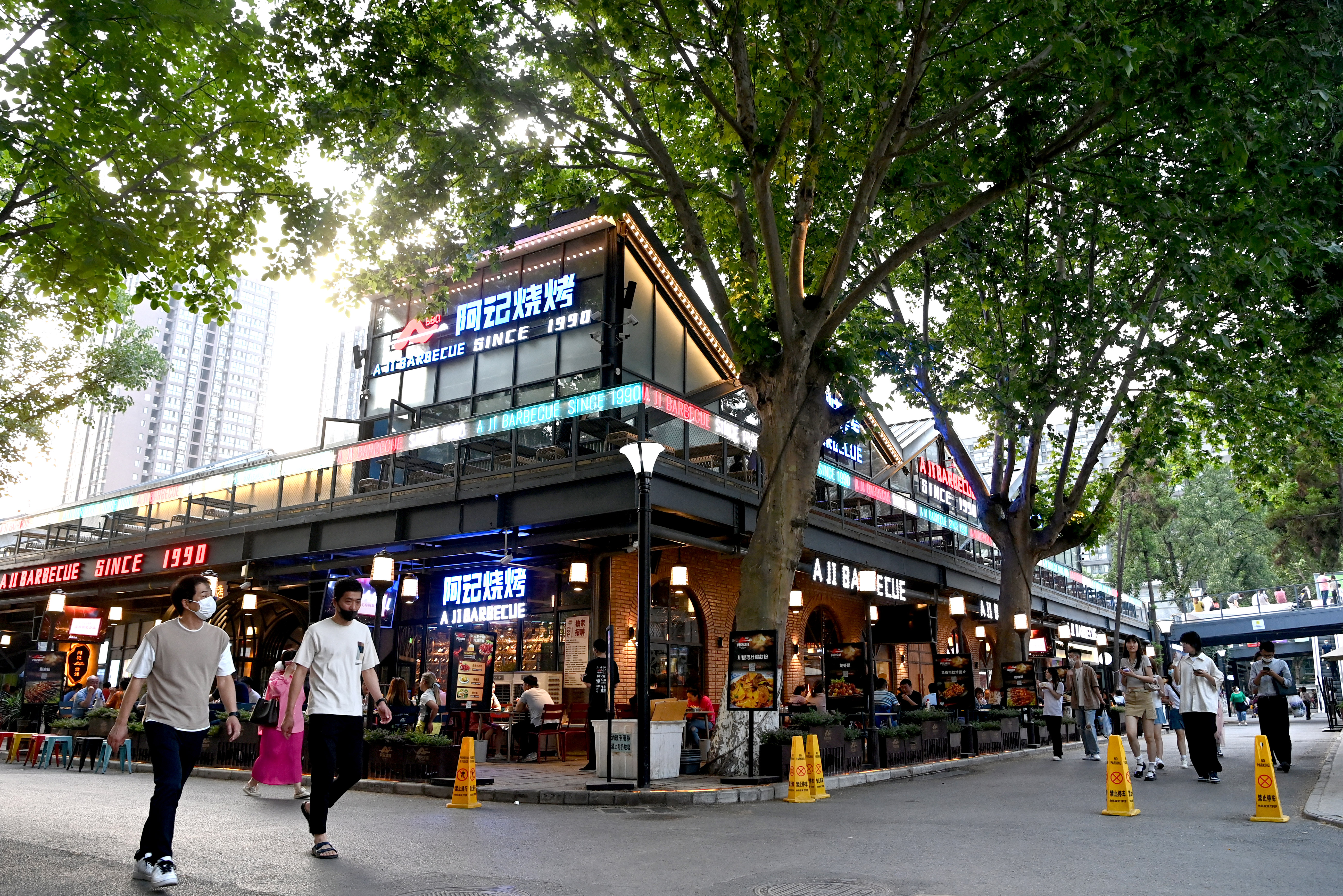 市民在西安際華3511文創(chuàng)科技園就餐(5月20日攝)。 新華社記者 劉瀟 攝