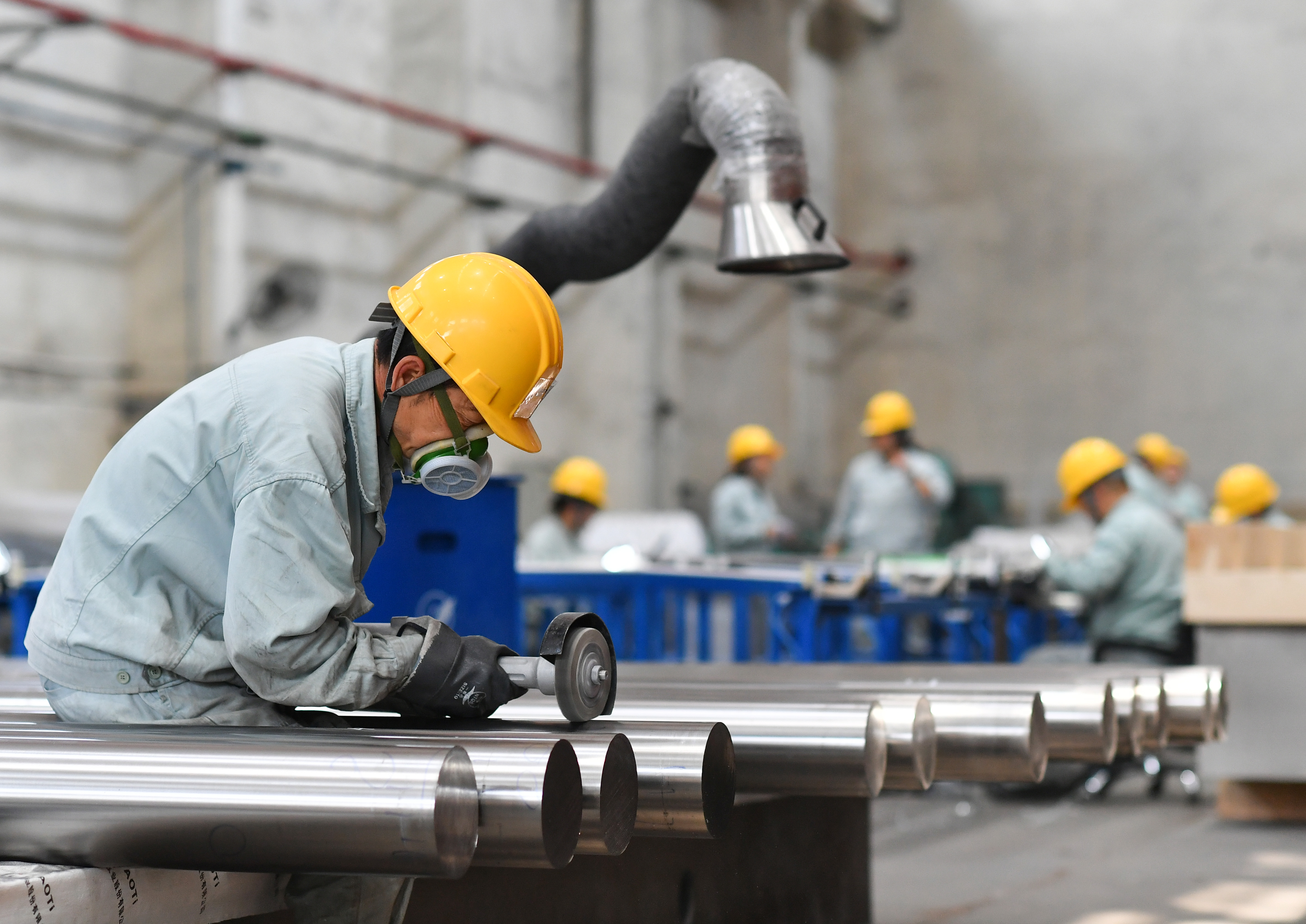 工人在中鐵寶橋集團有限公司生產(chǎn)車間工作。新華社記者 張博文 攝